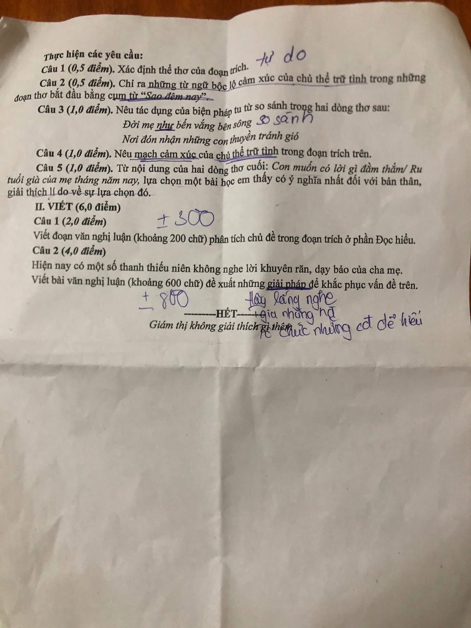 Giám thị không giải thích gì thêm