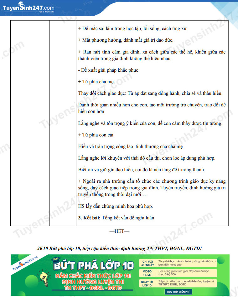 - Nêu vấn đề nghị luận: Giải pháp để khắc phục vấn đề con cái ngày càng không nghe lời khuyên răn, phản kháng hoặc thờ ơ với lời dạy dỗ.
