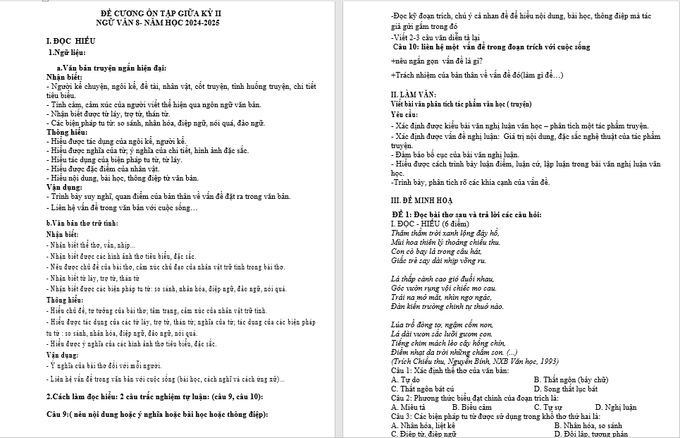 NGỮ VĂN 8- NĂM HỌC 2024-2025