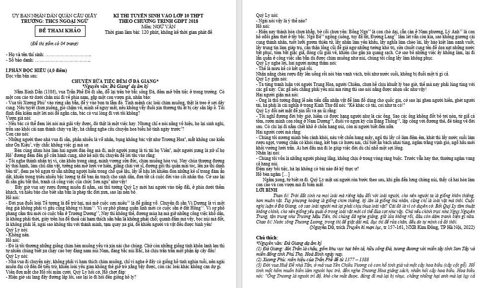 TRƯỜNG THCS NGOẠI NGỮ (Đề thi gồm có 04 trang) |