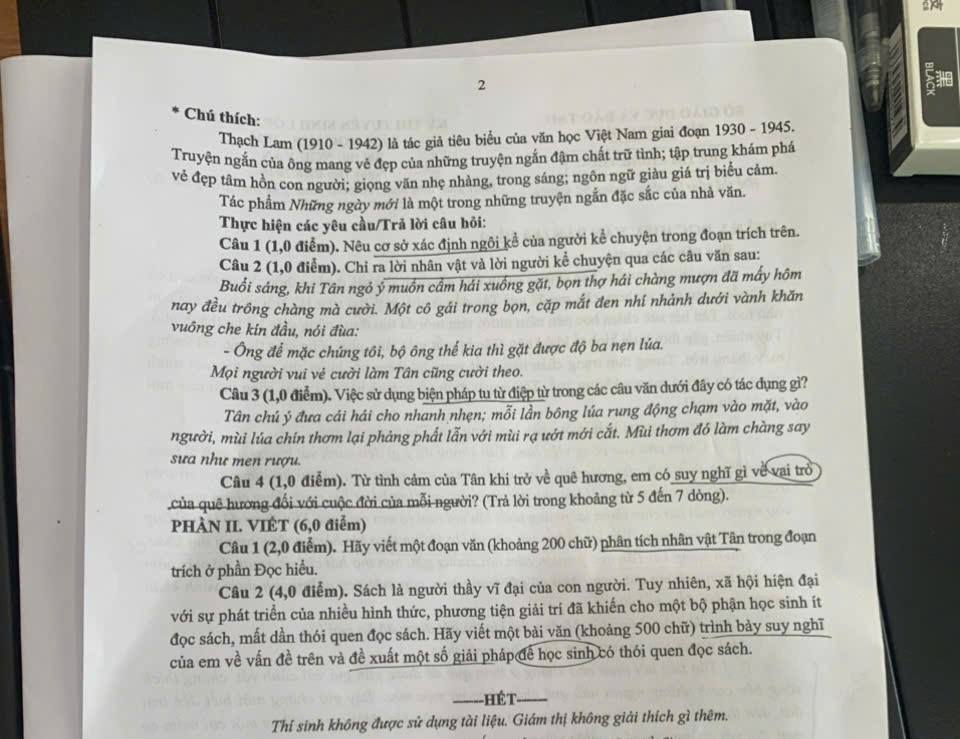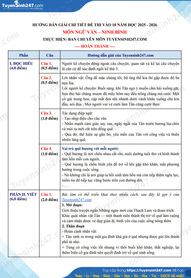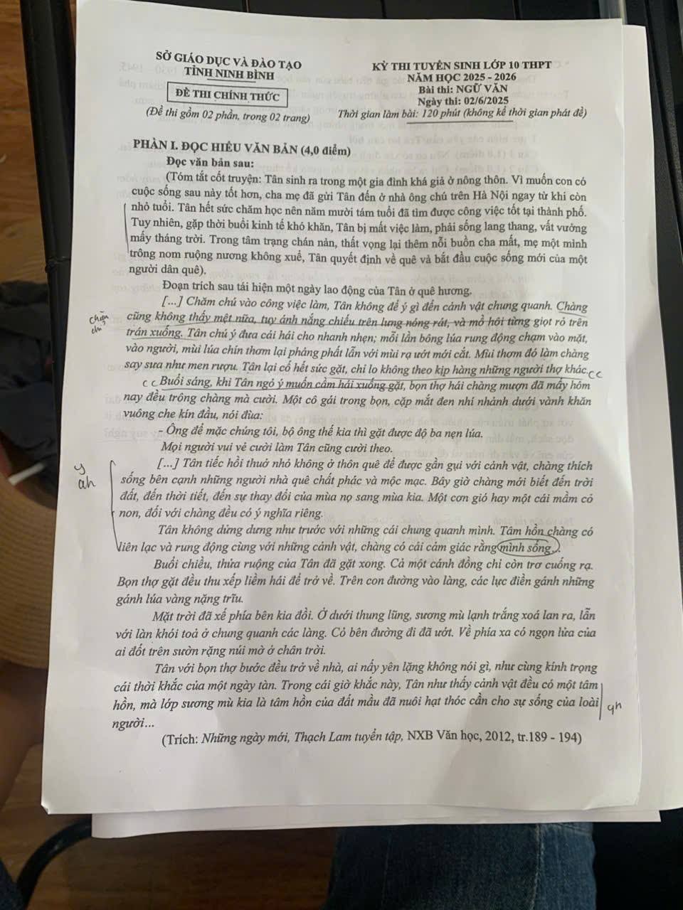 Đề thi chính thức môn Ngữ Văn vào 10 tỉnh Ninh Bình 2025
