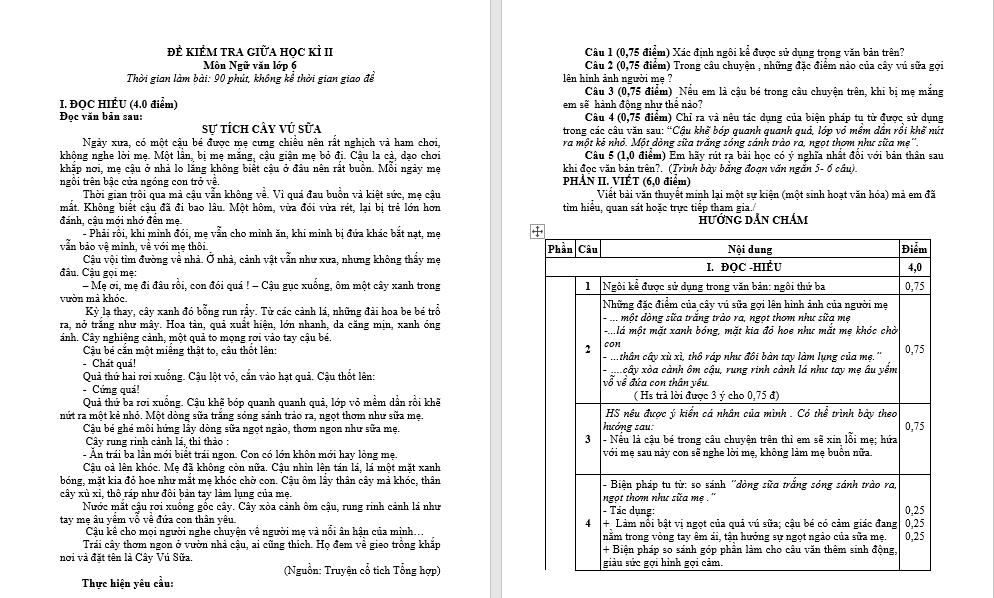 Câu 2 (0,75 điểm) Trong câu chuyện , những đặc điểm nào của cây vú sữa gợi lên hình ảnh người mẹ ?
