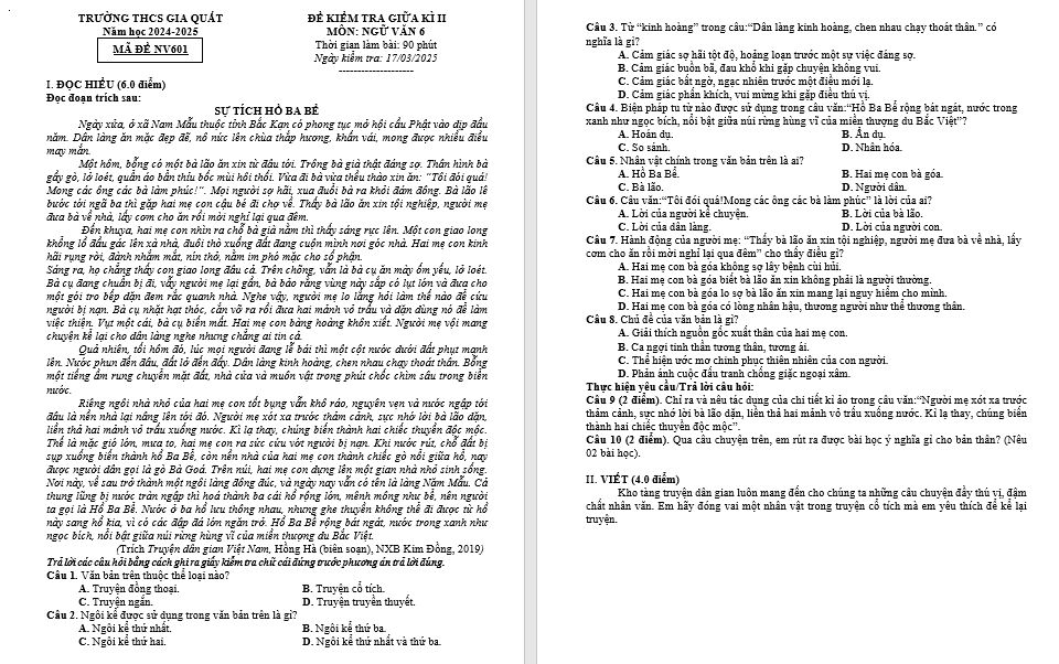 Năm học 2024-2025 MÃ ĐỀ NV601 |