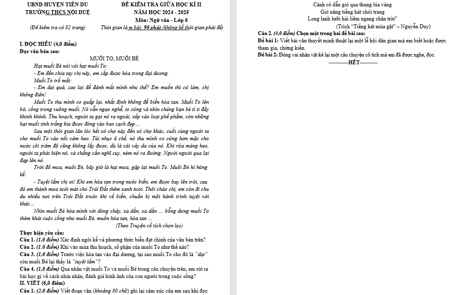 | 2 | – Khi vào mùa thu hoạch, số phận của muối To: | 0,5 |