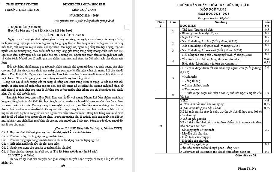 MÔN NGỮ VĂN 6 NĂM HỌC 2024 – 2025 Thời gian làm bài: 90 phút, không kể thời gian phát đề |