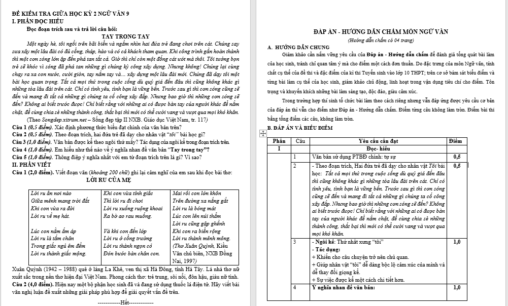 ĐỀ KIỂM TRA GIỮA HỌC KỲ 2 NGỮ VĂN 9