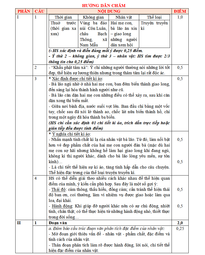 Câu 3 (1,5 điểm). Xác định và phân tích ý nghĩa của một chi tiết kì ảo có trong văn bản trên.