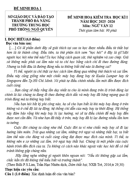 | 1 | Đọc hiểu | – Văn bản nghị luận