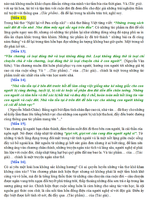 - Phân loại rõ ràng theo từng dạng đề: phân tích nhân vật, cảm nhận đoạn thơ, so sánh tác phẩm, nghị luận về tư tưởng – đạo lý, hiện tượng xã hội, sự kiện thời sự,…