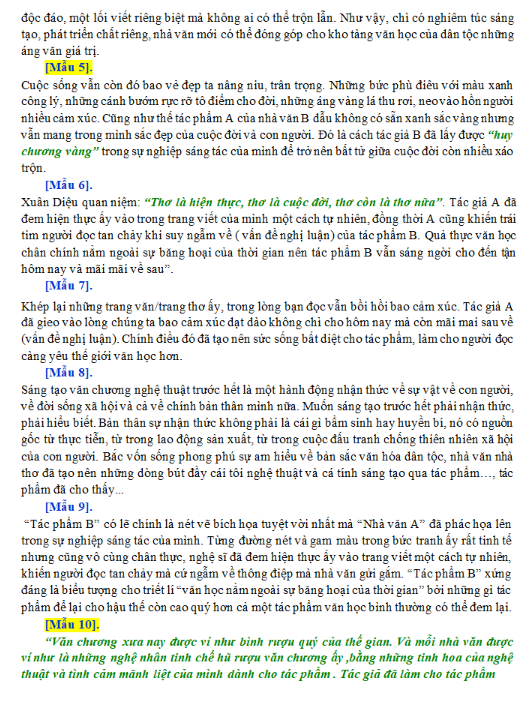 - Học sinh có thể học thuộc, biến tấu hoặc lấy ý tưởng để viết bài đúng hướng, đúng yêu cầu và nâng cao điểm số phần diễn đạt, cảm xúc.