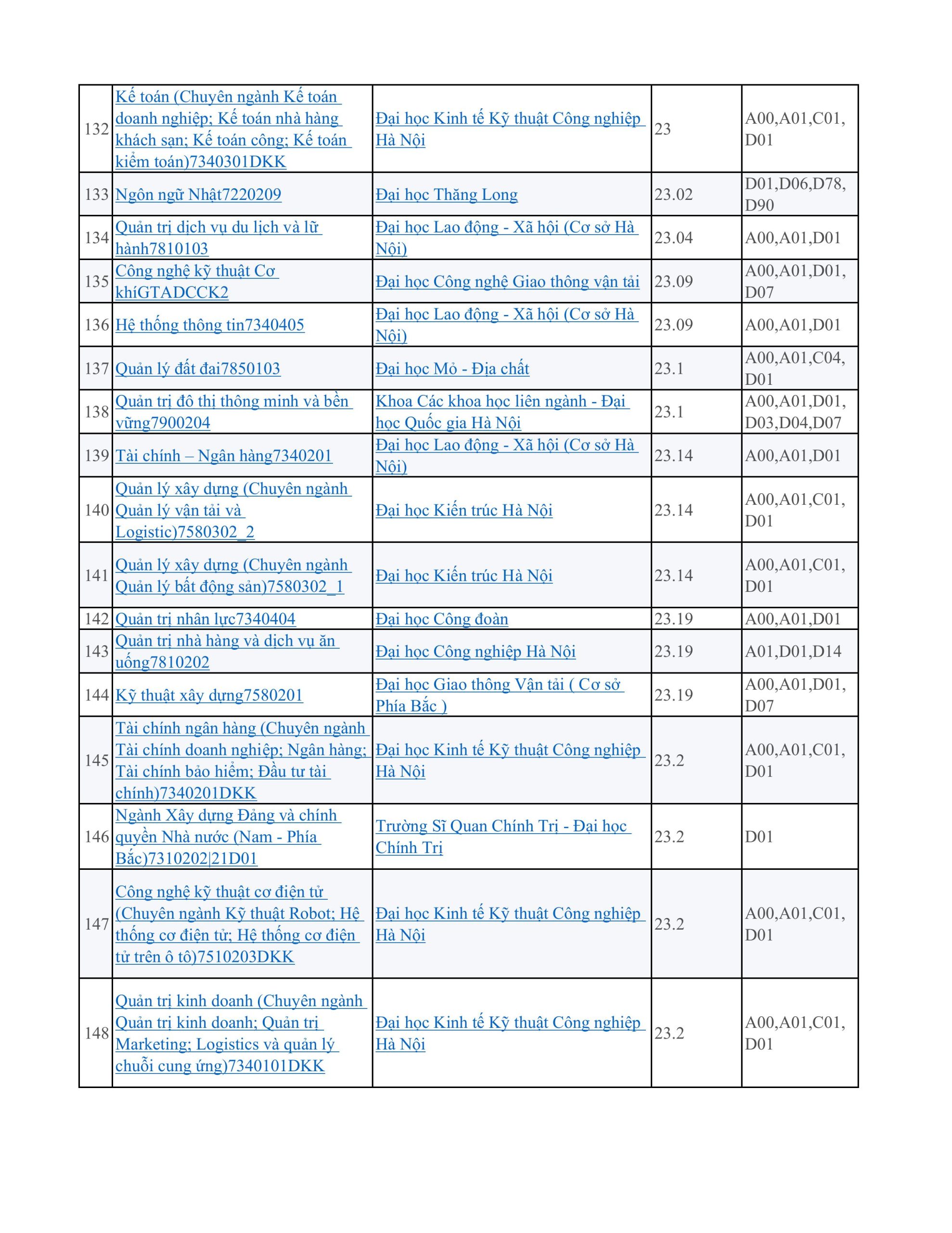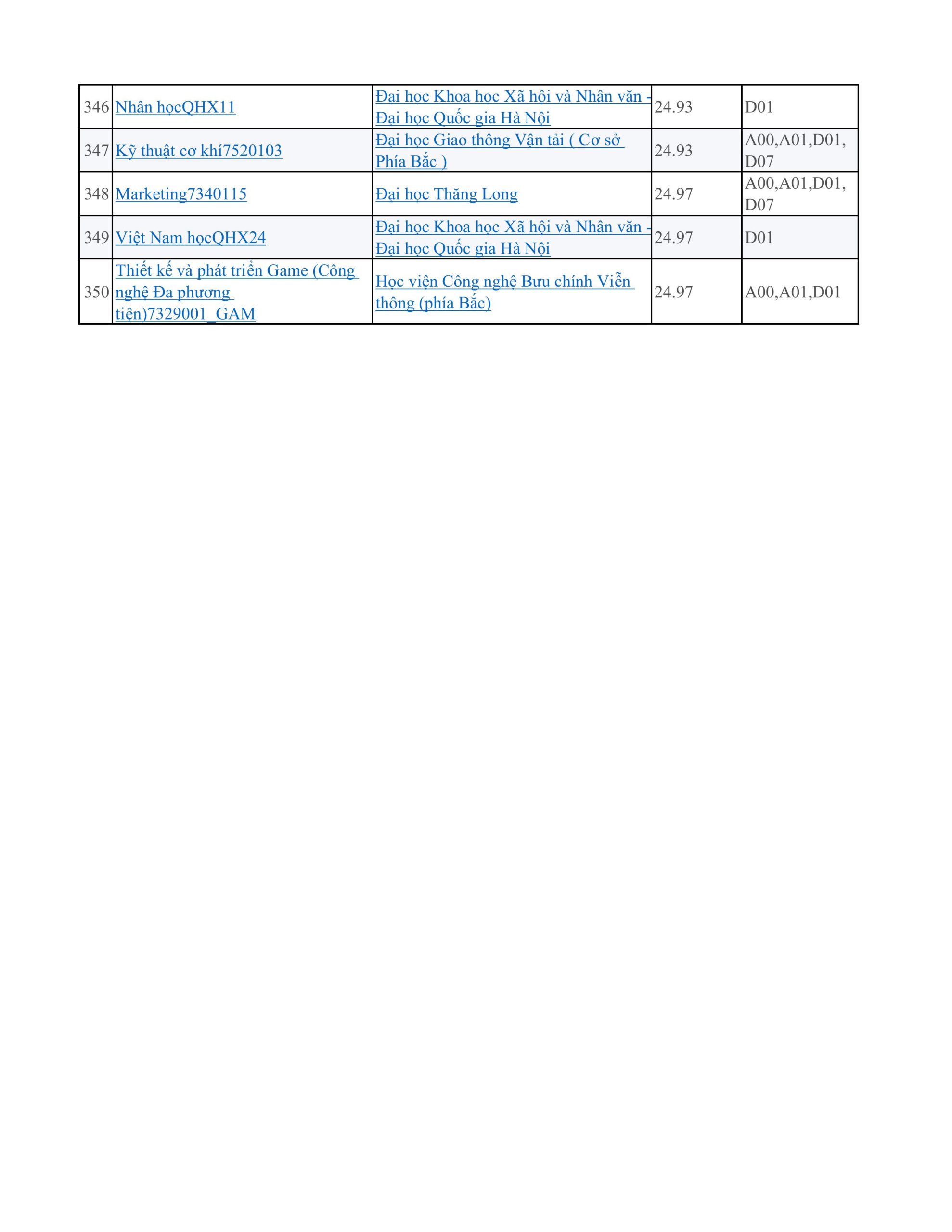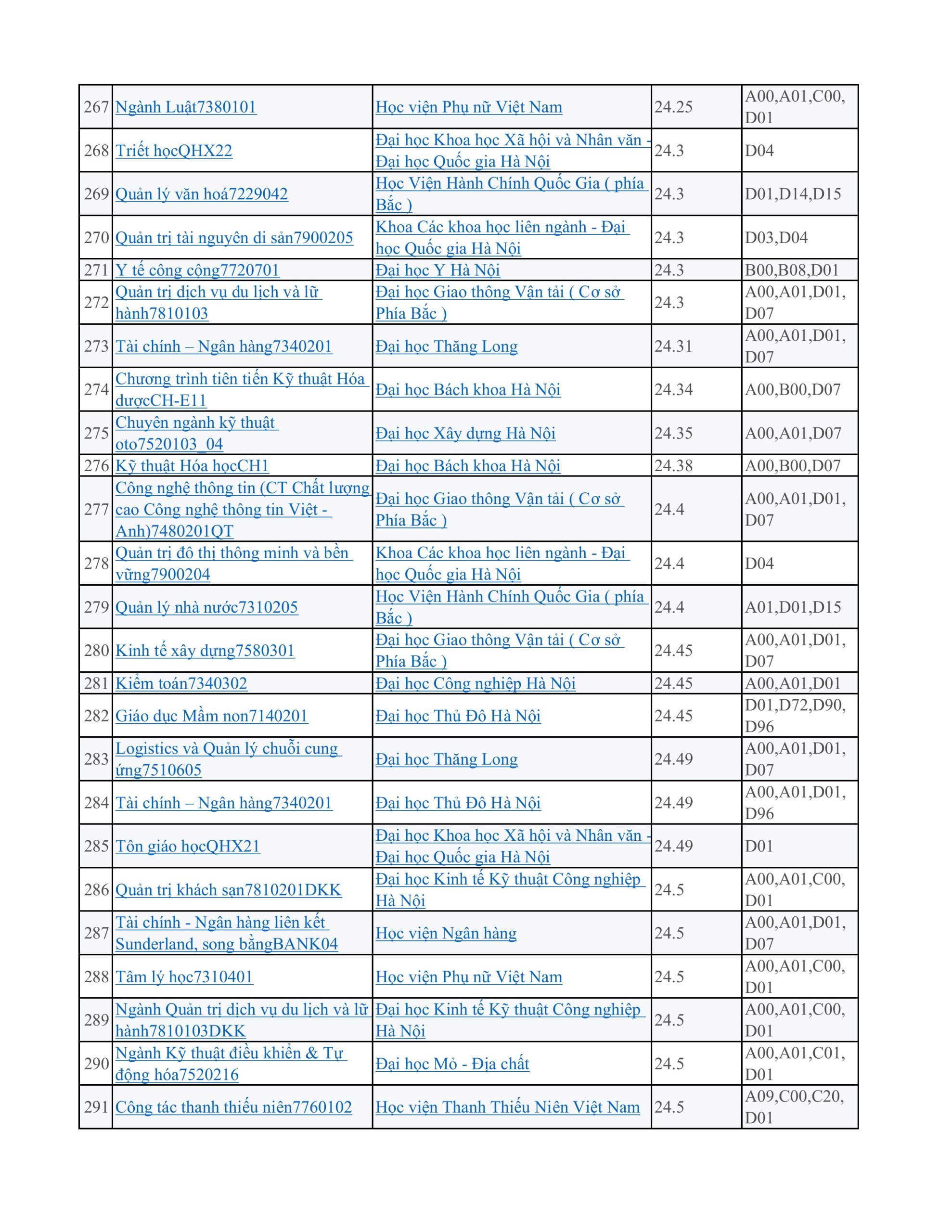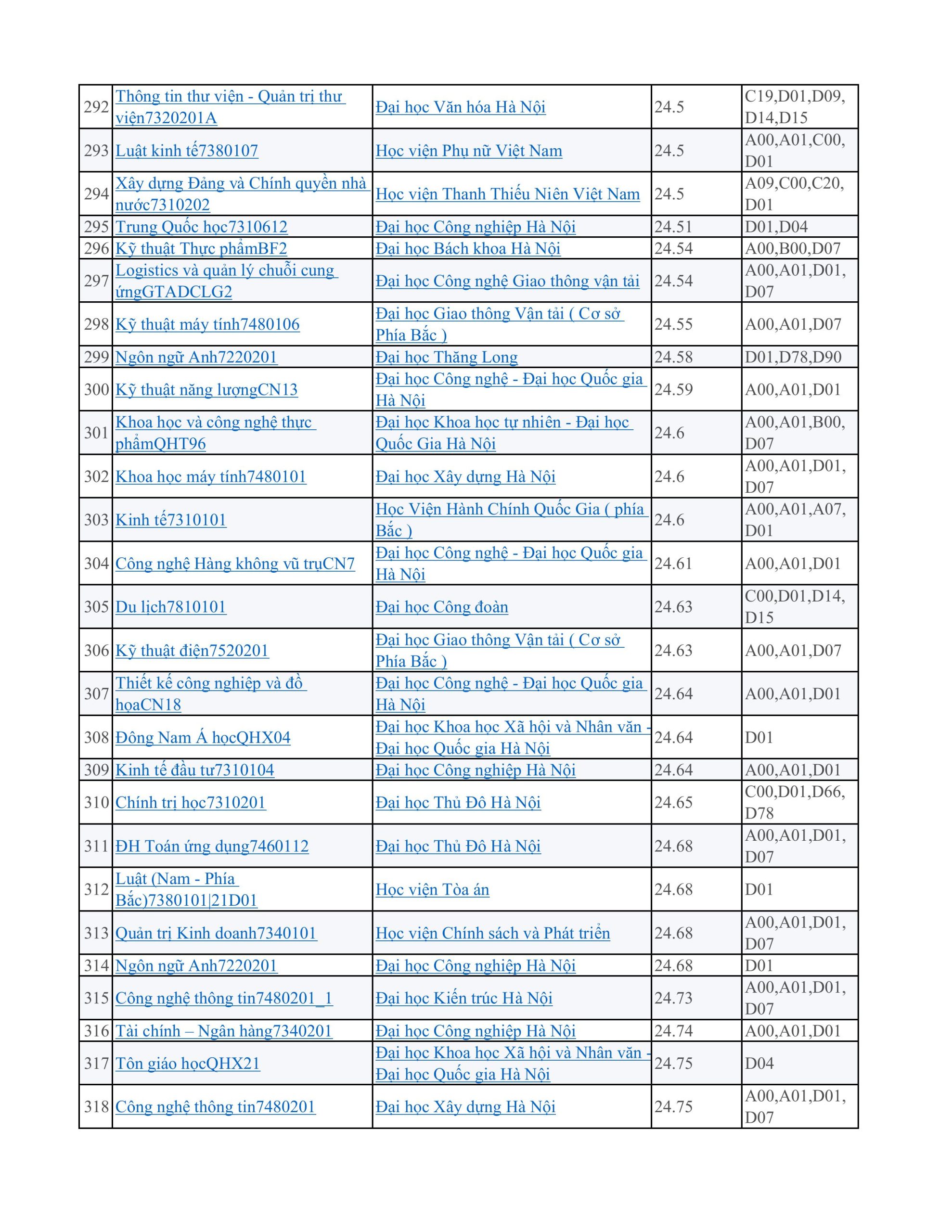 Danh sách các trường có điểm chuẩn từ 21 đến 24 điểm khối D năm 2024 ở Hà Nội