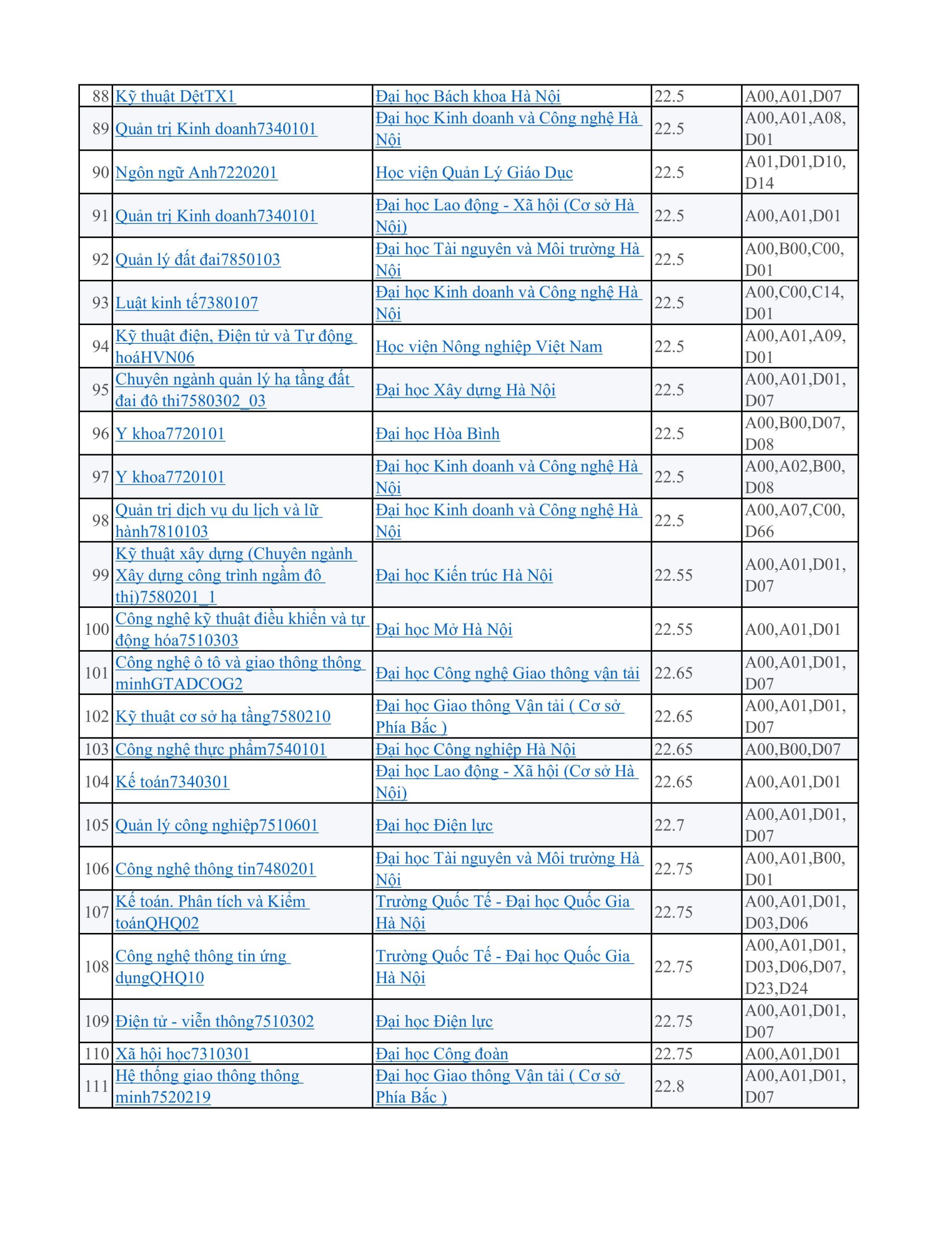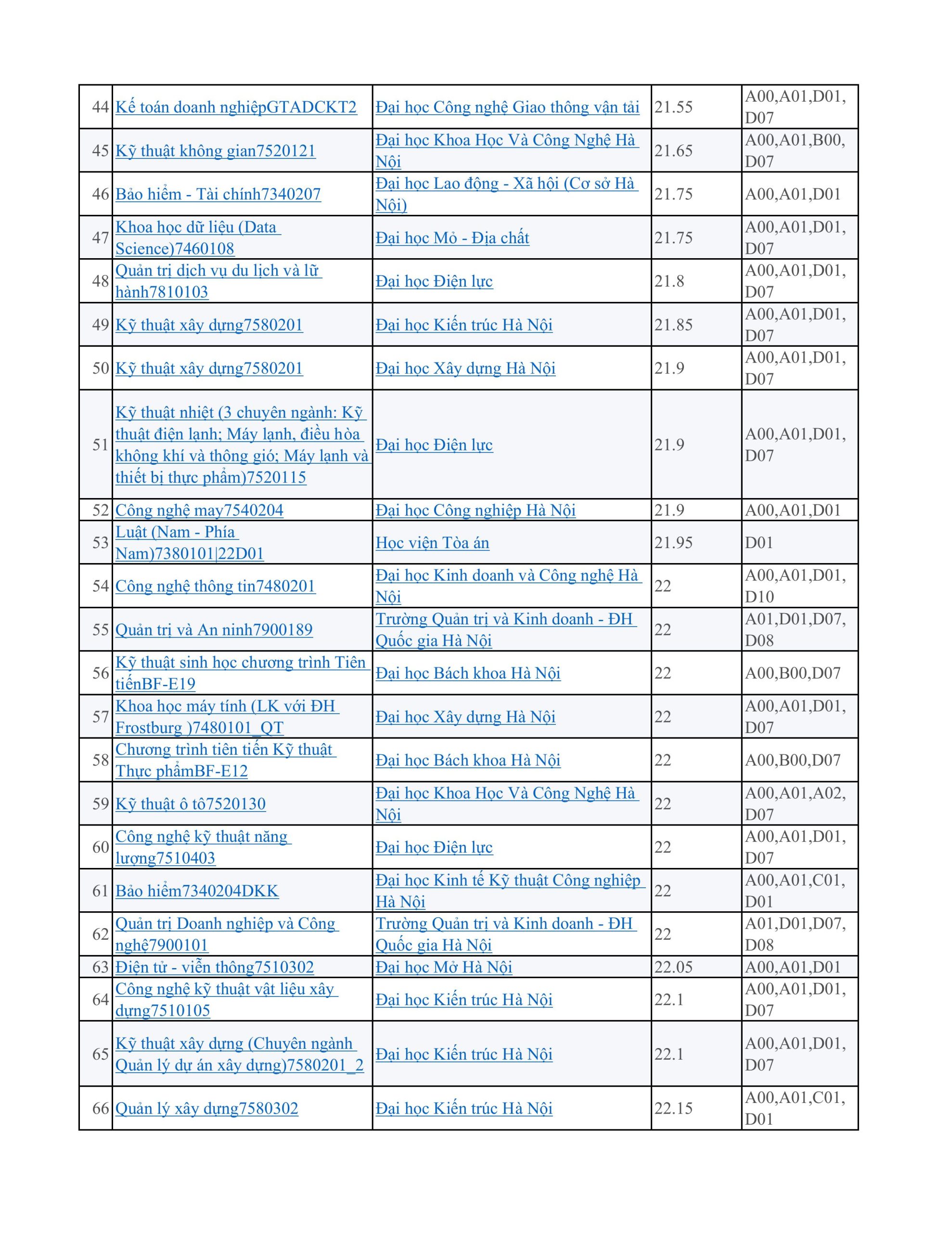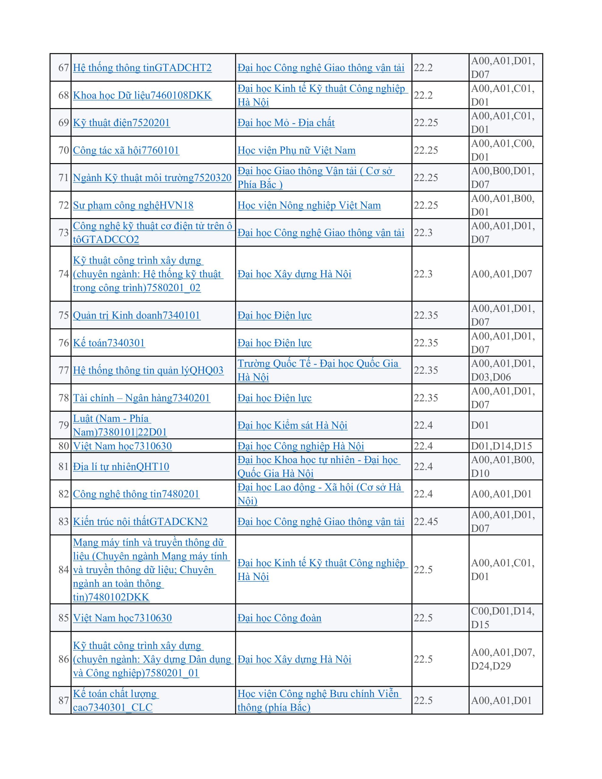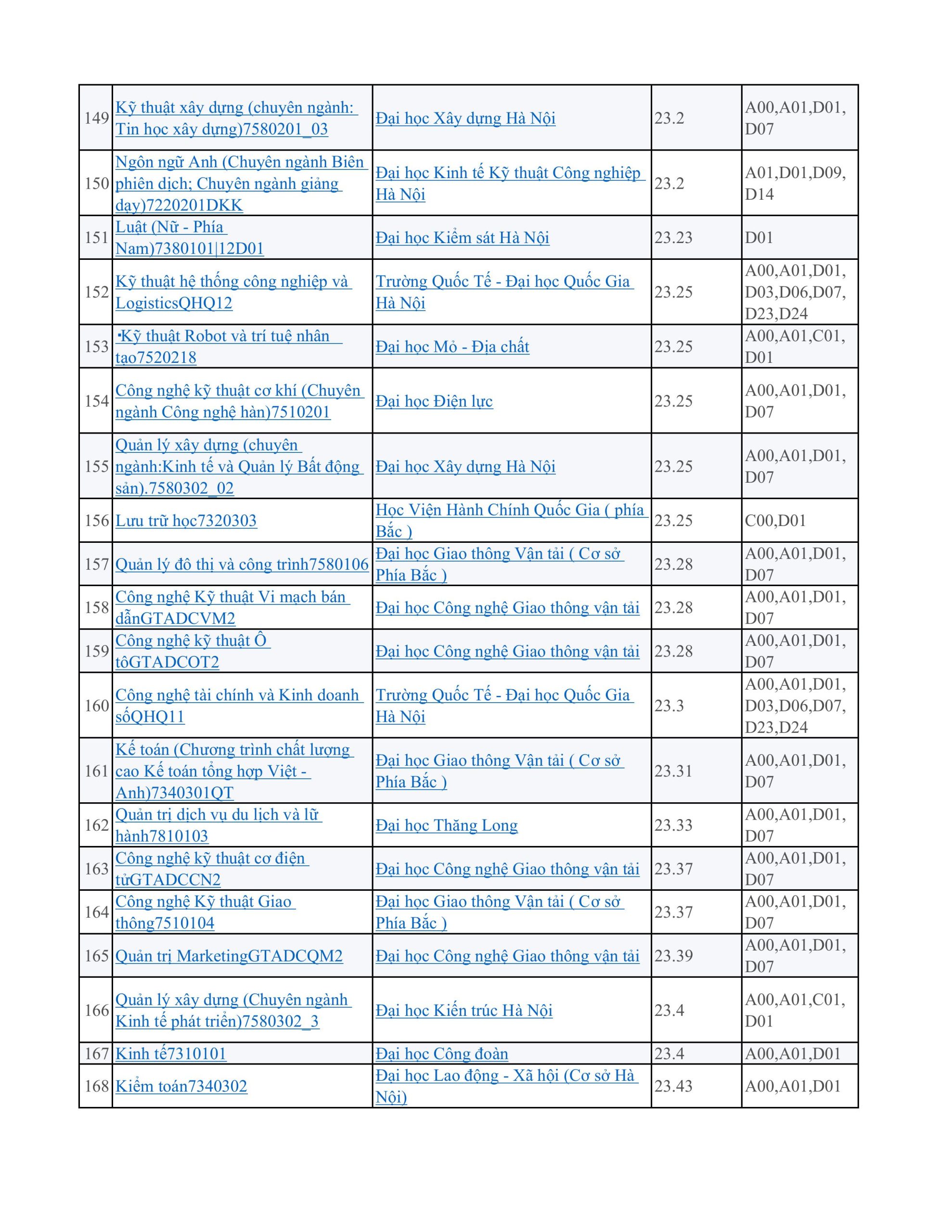 Danh sách các trường có điểm chuẩn từ 21 đến 24 điểm khối D năm 2024 ở Hà Nội