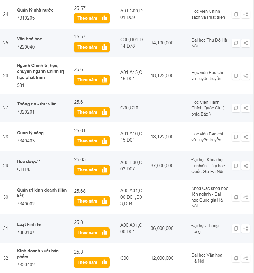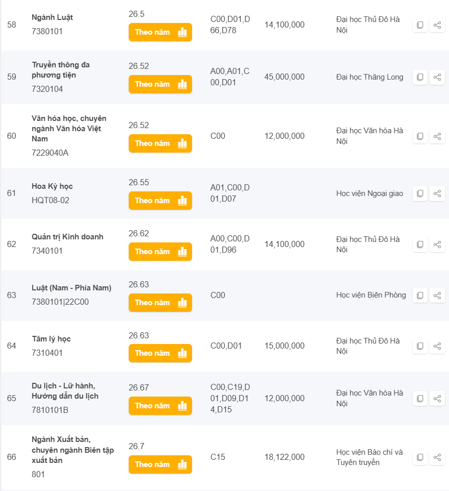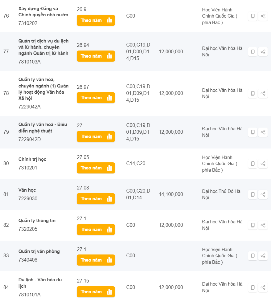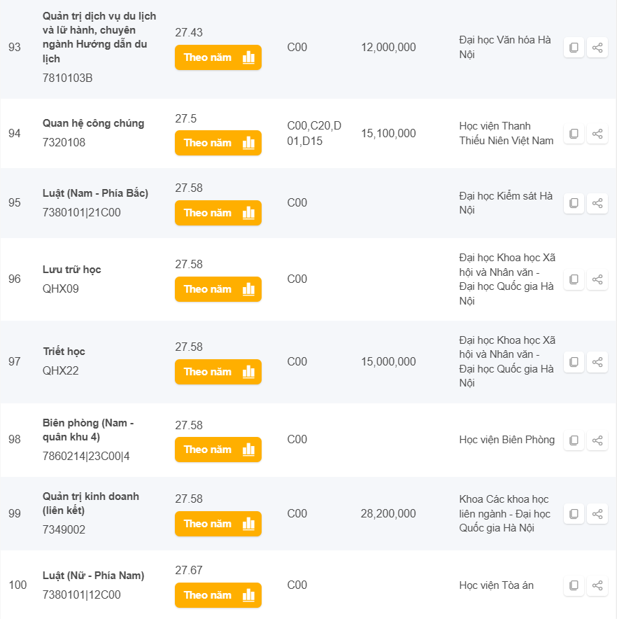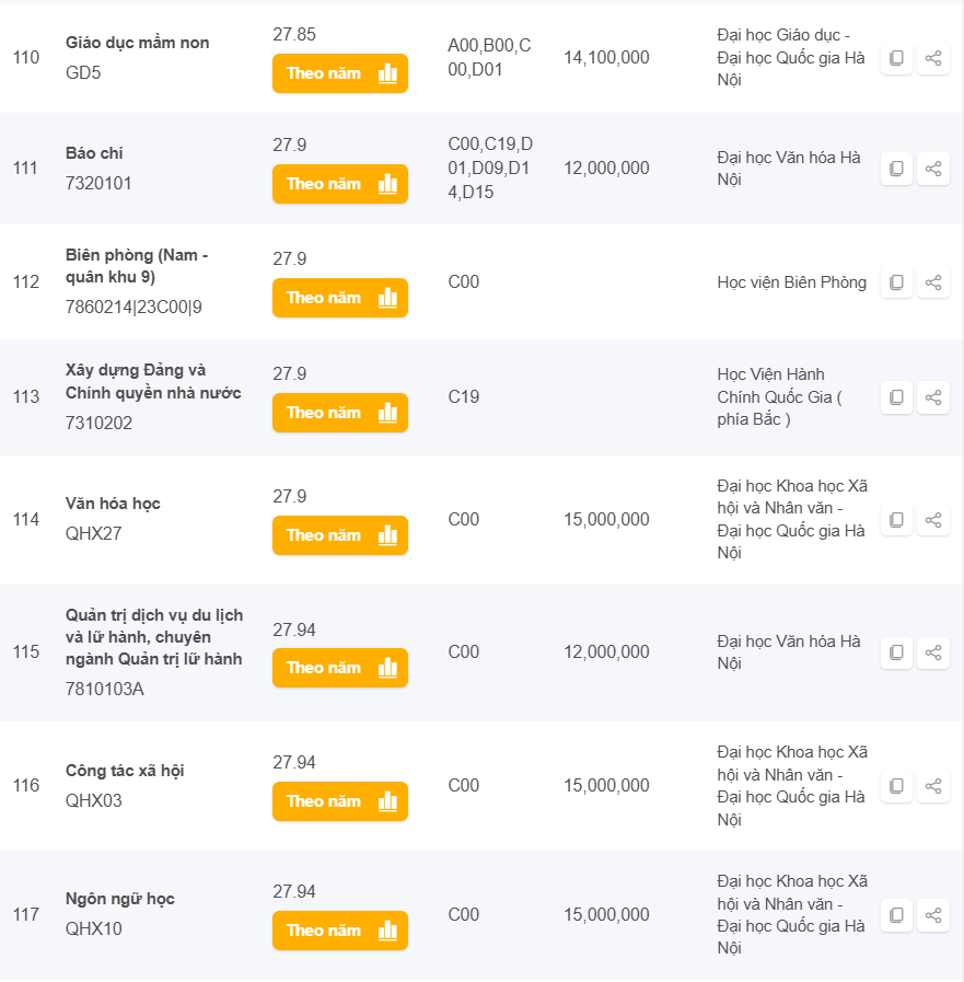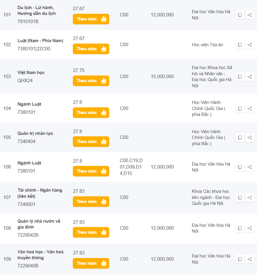 Danh sách các trường có điểm chuẩn từ 25 đến 28 điểm khối C năm 2024 ở Hà Nội