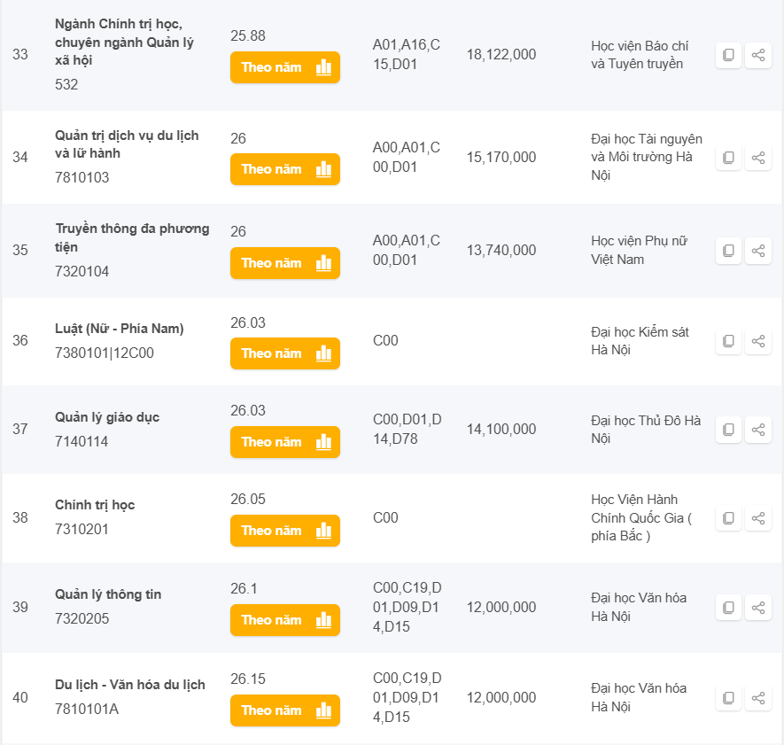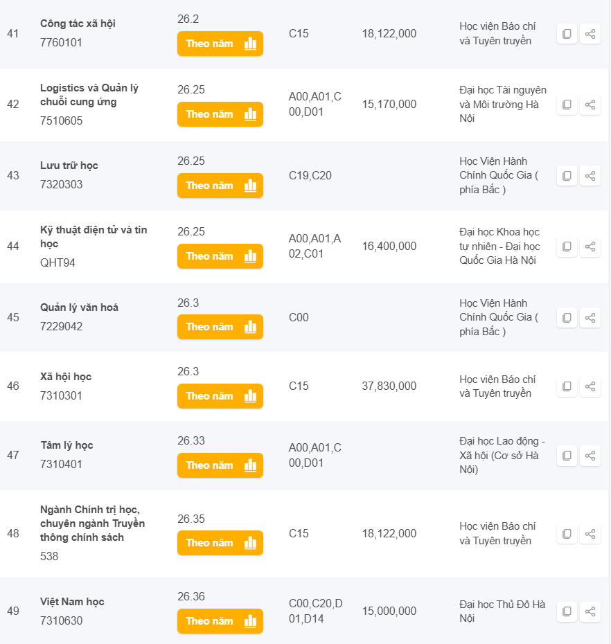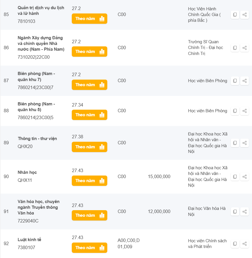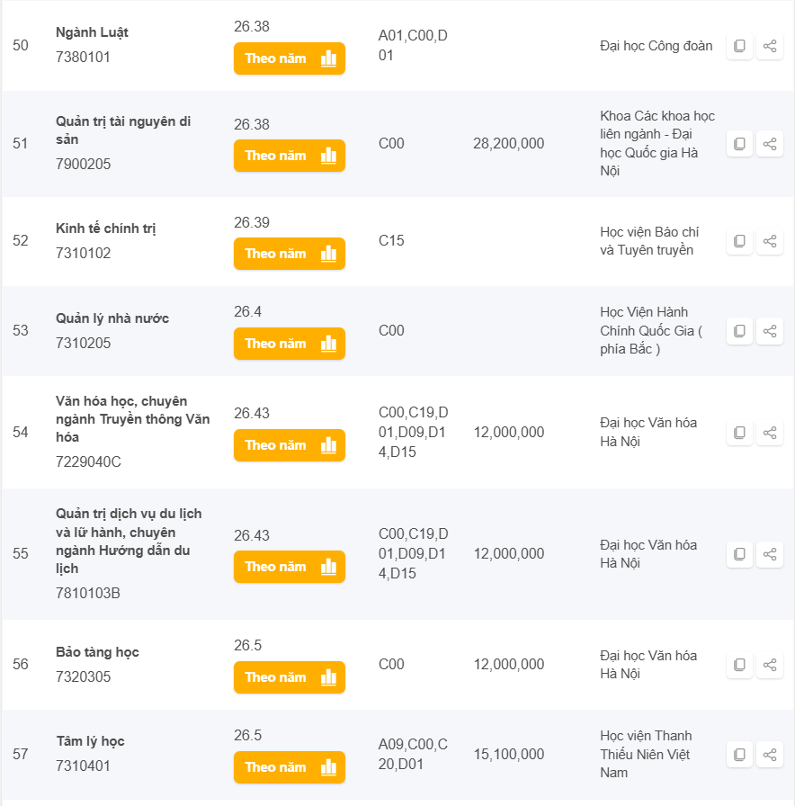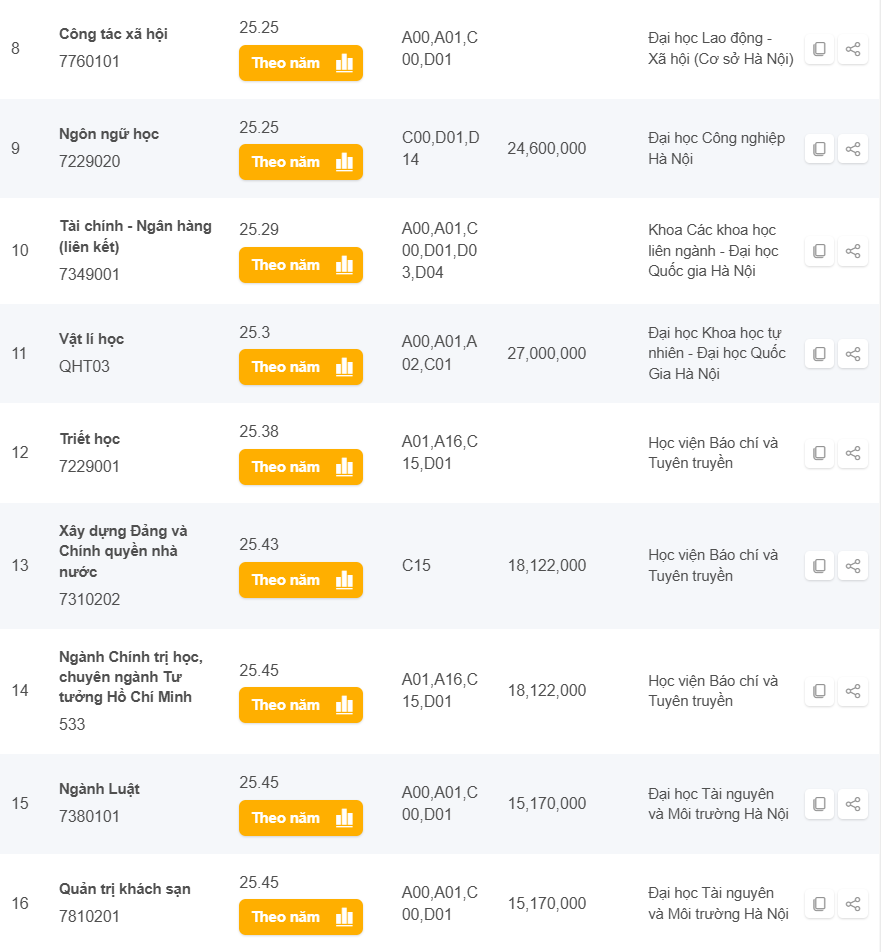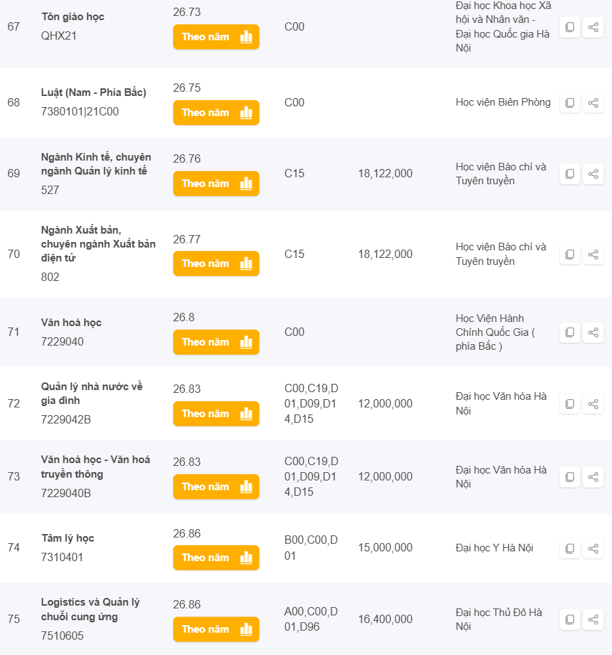 Danh sách các trường có điểm chuẩn từ 25 đến 28 điểm khối C năm 2024 ở Hà Nội